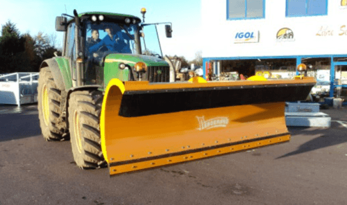 Lames de déneigement avec renforts dorsaux et caoutchouc 40mm spécial neige. Attelage relevage. Feux de gabarits et plaques de signalisation .