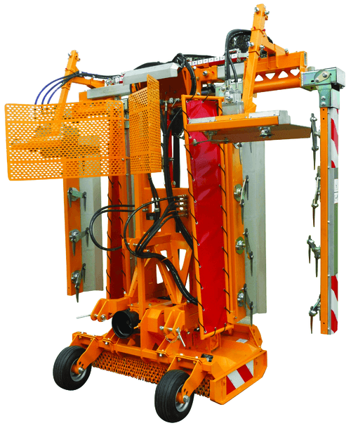 Tondeuse de 1,30 à 1,80 m de coupe.<br /> Rogneuse pour vignes de 1,80 à 2,50 m et de 2 à 3 m.<br /> Entraînement mécanique de la tondeuse et des coupes verticales de la rogneuse.<br /> Coupe horizontale hydraulique.<br /> Commande électro-hydraulique avec joystick en cabine.<br /> Déclenchement des panneaux verticaux pour plus de sécurité.