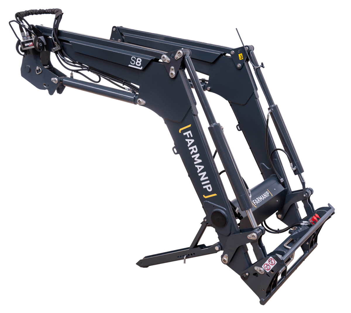Chargeur S6. Compatible pour tracteurs de 50 à 120 cv. Hauteur de levée à l'axe de l'outil : 3,5m. Angle...