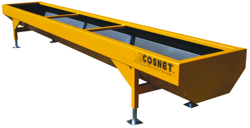 Une gamme d’auges peintes renforcées fabriquées en tôle d’acier plié d’une grande rigidité et destinées pour une alimentation en fourrage et ensilage aux bovins.