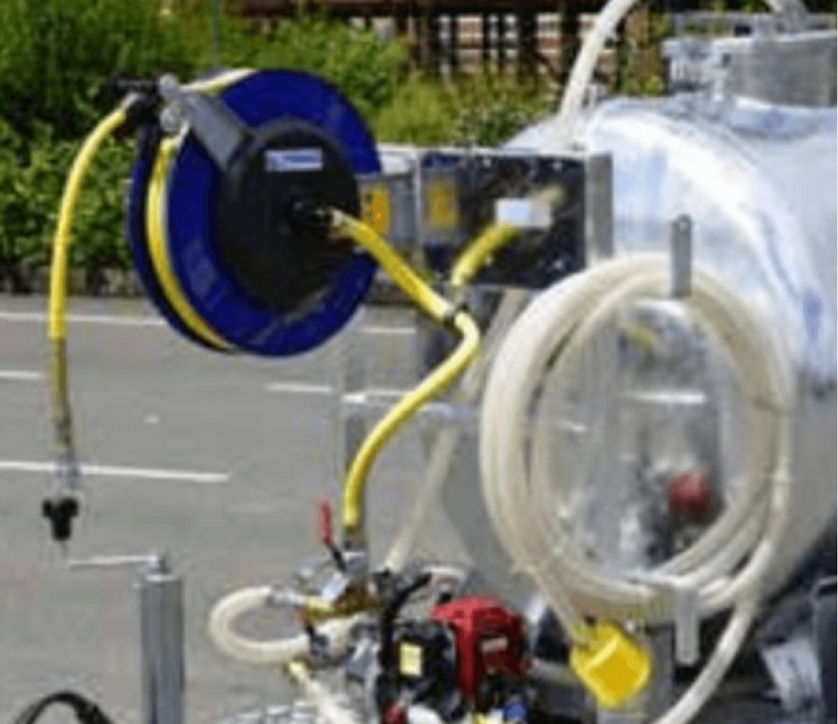 Sur les modèles espaces verts motopompe HONDA WX10 ou WX15 avec un enrouleur métallique et tuyau de 15 m, diamètre 15 x 21 mm de 15 m. Plateforme tôlée en partie avant sur ces modèles pour recevoir l’équipement motopompe de série sur modèles espaces verts. Garde boue plastique sur modèle 1 essieu et tôlé pour les modèles double essieux.