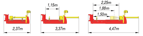 La puissance de fendage de ces 2 modèles est de 15 tonnes avec pompe tracteur 2 coupleurs (18 t en option, entrainement PDF 540 tr/min).