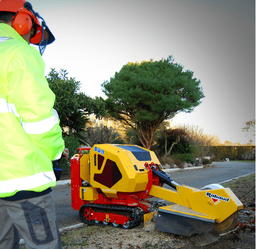 Rogneuse sur chenilles, modèle compact avec sa largeur de 80 cm peut passer par une porte montage sur chenilles pour tous types de terrains même accidentés.