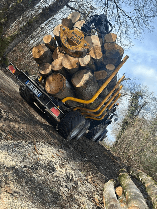 Une gamme complète de remorques forestières pour tracteur. PTAC de 4,5 T jusqu’à 18,3 T. Homologation routières sur toute la gamme. Possibilité de grues forestières avec portée jusqu’à 9,5 m. Qualités professionnelles, flexibles protégés, rallonge de remorque de série, jantes renforcées (cerclage et protection valve), timon orientable par 2 vérins, équipements à la carte : ranchers, rallonges, plateforme…. Pour les remorques 11,3 ; 14,5 ; 16,3 et 18,3 T, le choix au client entre les ranchers cintrés classique ou les berces type "Porteur"