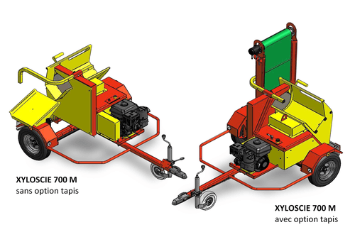 Roue de transport + poignée pour faciliter le déplacement (XYLOSCIE 600 M) ou châssis routier (700 m pro)