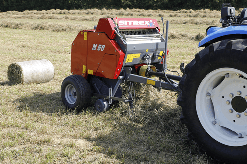 Cette mini presse permet de faire des petites balles cylindriques transportables manuellement. Elle a en outre l’avantage de pouvoir être attelée à des tracteurs de faible puissance et être utilisée dans des endroits à forte pente ou à passages étroits. Disponible pour différents types d’attelage (3 points, timon central, timon latéral), disponible en version filet et version ficelle.