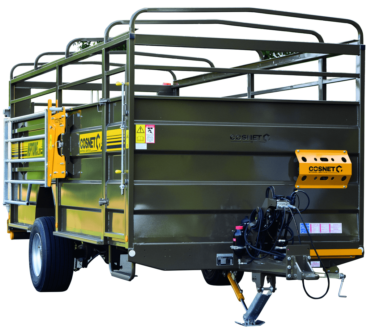 12/14 bêtes. Freinage double ligne pneumatique. Abaissement et relevage hydraulique. Pose au sol.