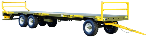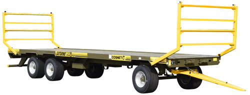 Une gamme de plateaux à paille portés 6 roues Saturne PTE et STI avec une charge utile de 14T9 à 20T4, timon articulé avec ressort de rappel, échelons réglables galvanisés hauteur 0,80m augmentant la longueur des planchers de 1m (sauf sur les modèles SATURNE 13.10 de 12 m de plancher qui disposent d’échelons droits galvanisés) fond tôlé sur traverses 50x100 mm, largeur 2,5 m, 2 caissons à sangles. 8 modèles à freinage hydraulique et 6 modèles à freinage pneumatique. Choix d’équipements en option.