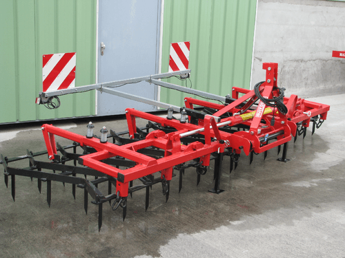 2 - Herse HVSL est un modèle lourd équipé de dents mangano-siliceux de 28 mm, longueur 280 mm qui conviennent aux sols les plus durs. Châssis bipoutre 100 x 100 jusqu’à 6,3 m et tripoutre à partir de 7,3 m.