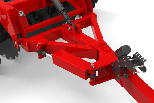 Le réglage de la profondeur de travail peut se faire par l'angle des trains de disques. Pour doser l'agressivité de vos disques il faut ajuster le terrage grâce à la butée sur le vérin réglable de l'essieu.