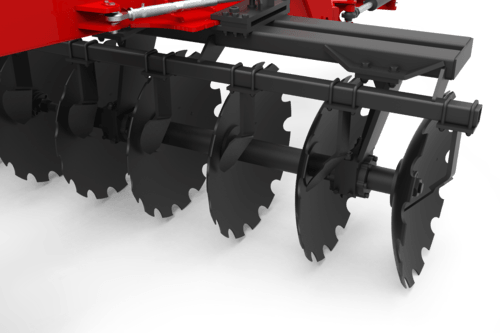 Suivant la profondeur de travail souhaitée et le volume de végétaux, plusieurs diamètres de disques sont disponibles (810 mm, 910 mm ou 1020 mm). Des décrottoirs raclent le surplus de terre et de végétaux qui restent collés sur le disque.