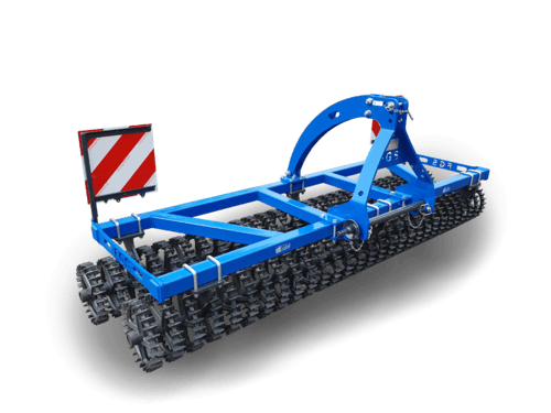 Gamme complète de Croskillettes de 2,50 à 6.20m de largeur de travail. Châssis tubulaire, barre d’attelage 3 points, arbres en acier Ø 45mm équipés de paliers avec roulements à billes, éclairage et signalisation. Au choix disques Ø 290, 320, et 360mm sur 2 rangées.