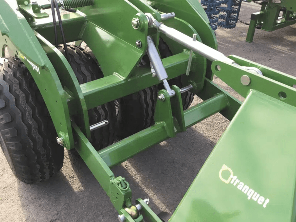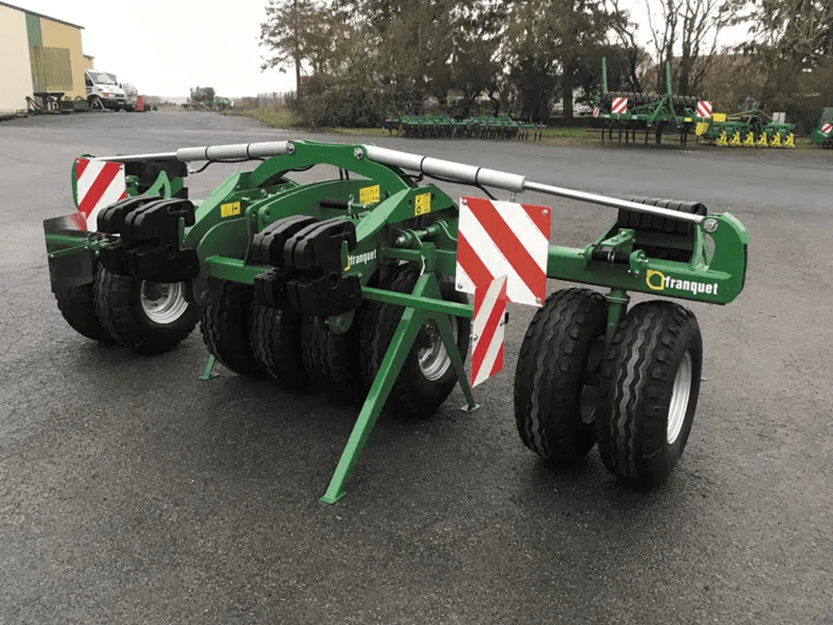 La gamme de tasse à pneus auto directionnel est pourvue de pneus 11,5/80 – 15,3 diamètre 700 mm, de 4 roues à 16 roues pour des largeurs de 1,5 à 8 m. Ces machines peuvent être équipée d’un attelage mécanique ou hydraulique pour une combinaison avec masses, vibroculteurs à dents, trémies frontales et permettent un tassement en surface. Décrottoirs inclus, attelage 3 points catégorie 2 et 3.