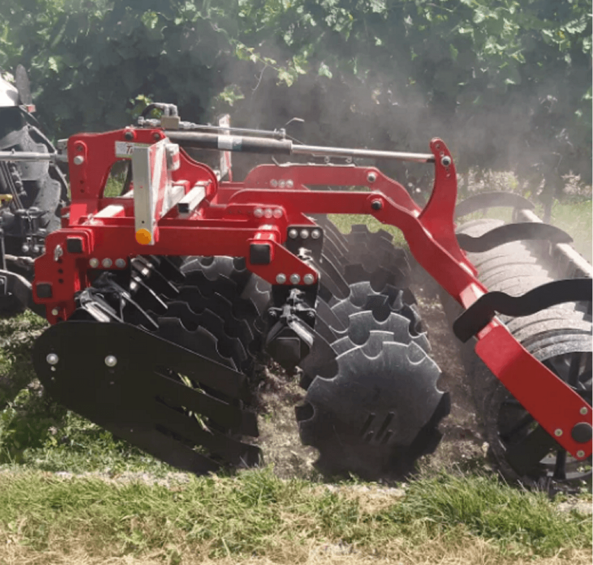 Le DISKATECH est un déchaumeur porté à disques indépendants spécialement conçu pour les petits espaces comme les vignobles et vergers. Parfait pour le déchaumage ou le travail d'inter-rangs avec des disques crénelés œuvrant à grande vitesse pour l’amélioration de l’érosion et le mélange de la matière organique.