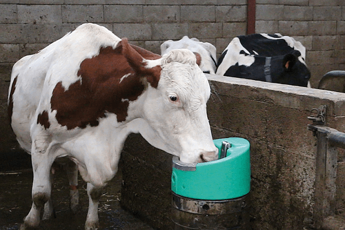 Abreuvoir antigel en polyéthylène avec palette inox. Système antigel 24 V, 50 W. Débit d'eau 13 L/min. Transformateur 230/24 V obligatoire, vendu séparément.
