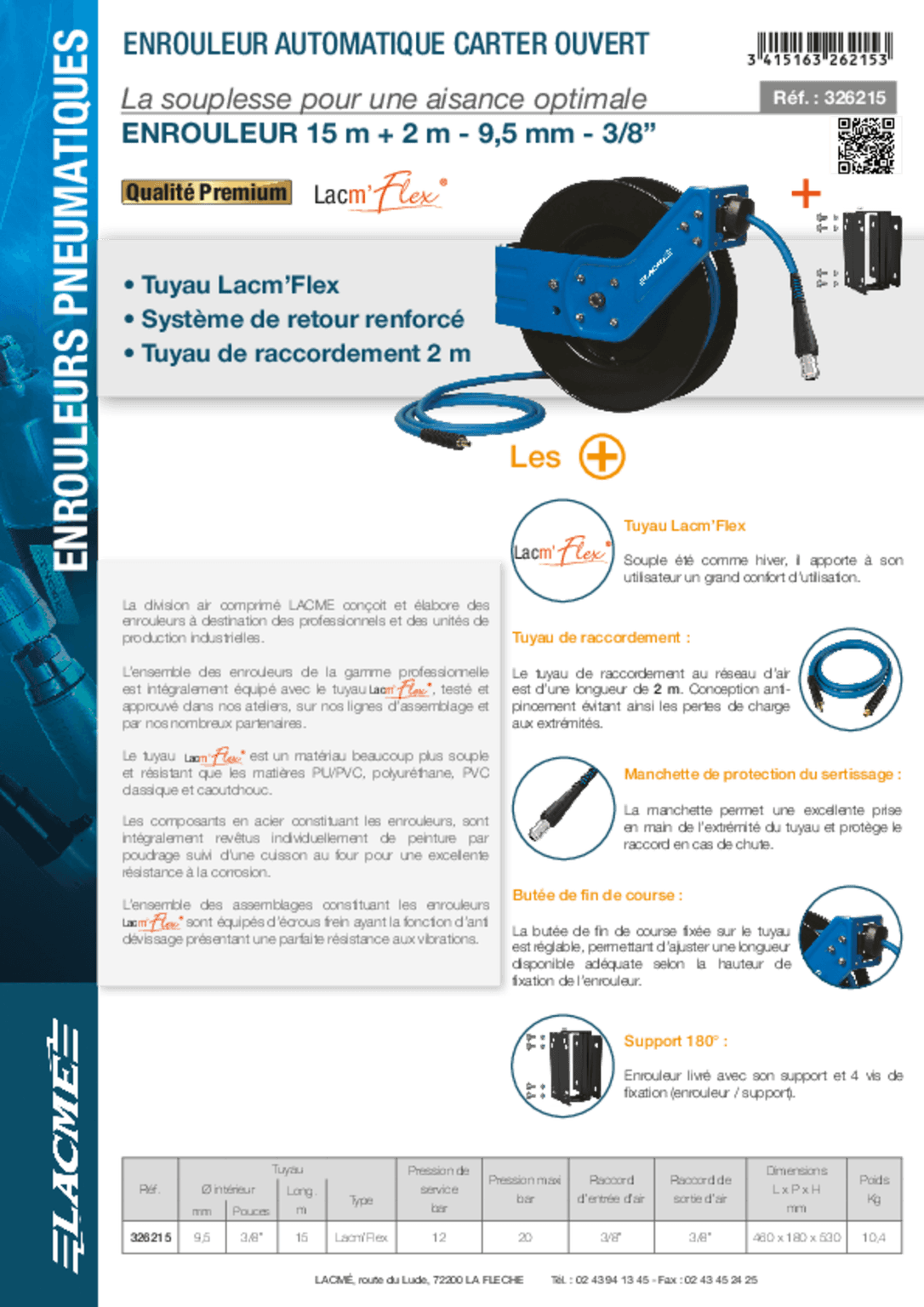 - Enrouleur tuyau d'air 15 m