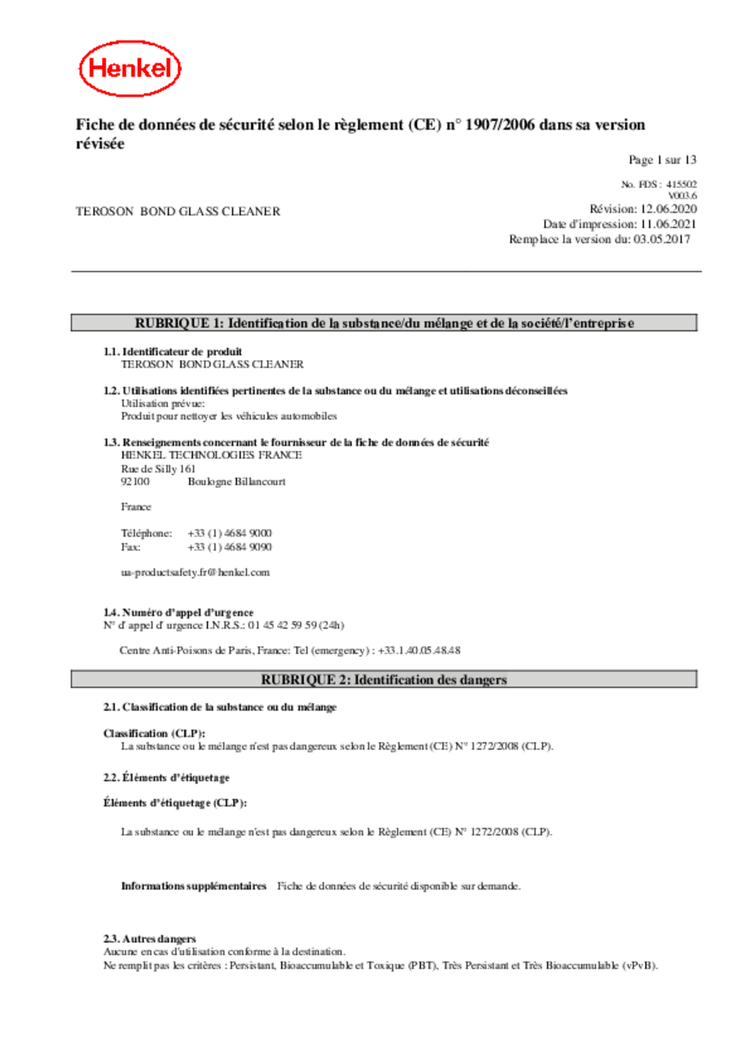Nettoyant séchant à l'air sans laisser de trace sur la surface nettoyée.