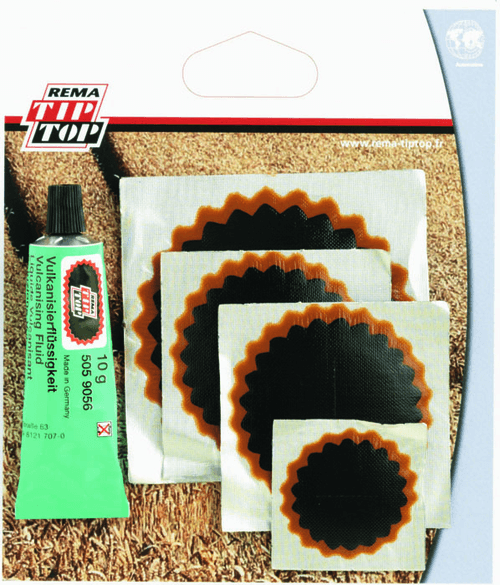 Contient : 2 rustines n°1 (ronde, diamètre : 33 mm), 2 rustines n°2 (ronde, diamètre : 45 mm), 3 rustines n° 3 (ronde, diamètre : 54 mm), 3 rustines n°4 (ronde, diamètre : 75 mm), 1 tube de 10 g de liquide vulcanisant.