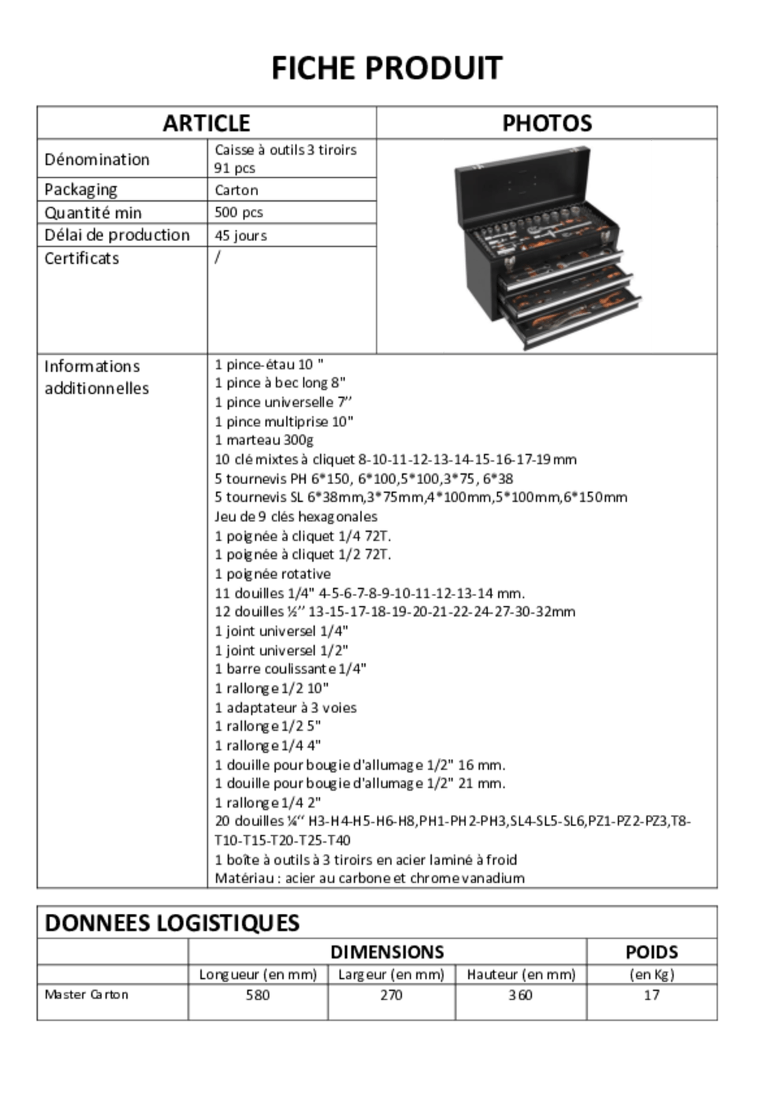1 rallonge 1/2'' 10''.