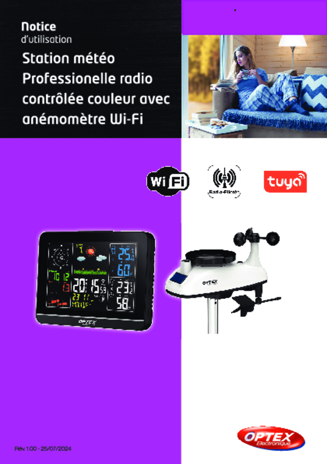 Mesure la température intérieure et extérieure, l'humidité, la vitesse du vent, la pluie, la pression barométrique, l'intensité lumineuse et les UV.