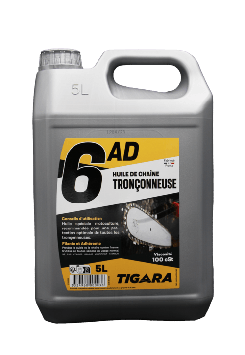 Lubrifiant pour chaîne de tronçonneuse et d'abatteuse. 6/8 AD. Usage intensif. Filante et anti-usure. Grade ISO 100. Bidon 5 L.