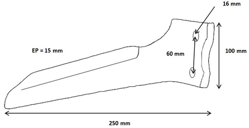 Dent de herse boulonnée 250 x 15 droite origine