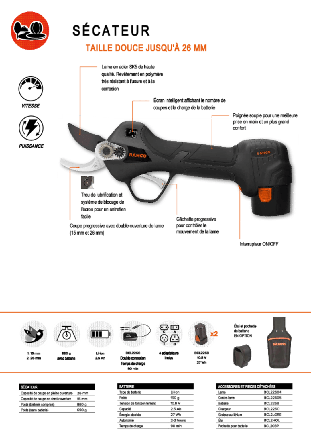 Coupe progressive avec 2 ouvertures de lame prédéfinies (15 mm et 26 mm).